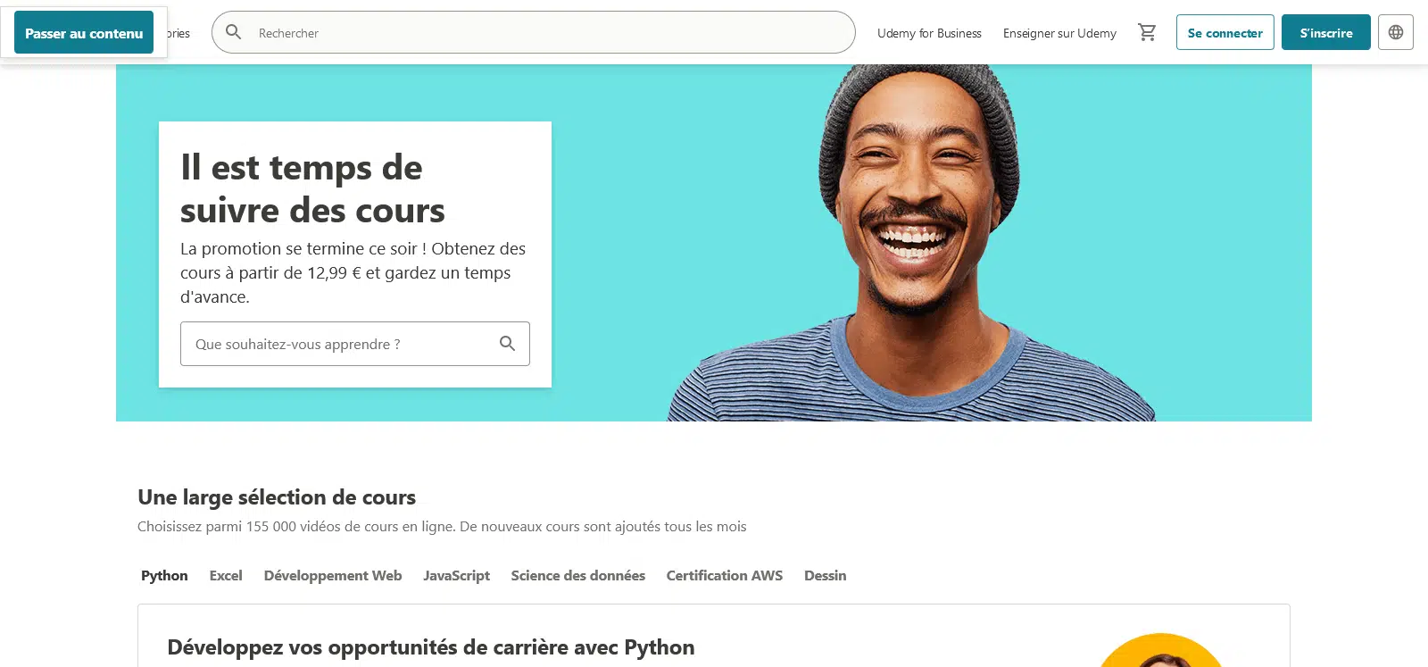 On est sur une page d’accueil pensée comme un écran de conversion. Pas de storytelling. Pas d’explication. Juste : voici ce que vous allez trouver.