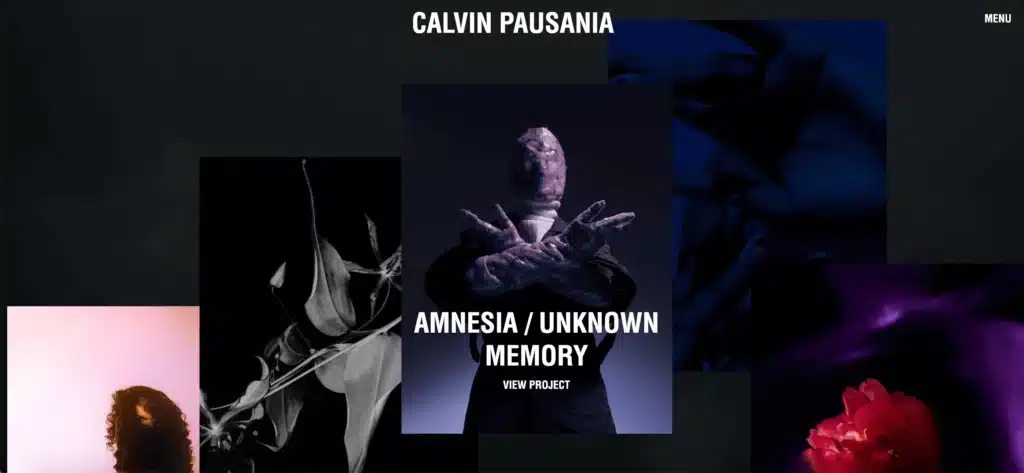 À l’arrivée sur ce site de photographe, on est tout de suite pris par cette intrigante vidéo d’introduction. Bien qu’un clic supplémentaire soit nécessaire pour accéder au reste du contenu, cela permet de bien mettre en contexte ce portfolio original. Cet arrière-plan noir avec ce texte blanc entièrement en capital, met brillamment en valeur les photos légèrement psychédéliques de cet ariste. La navigation est un peu confuse, il faut l’avouer. Les éléments semblent éparpillés, se superposant sans logique apparente. Mais cette belle mise en scène réussit à faire de ce site de photographe une galerie fidèle au style de son créateur. Cela est bien la preuve qu’une personnalisation poussée est tout à fait possible avec Wix.