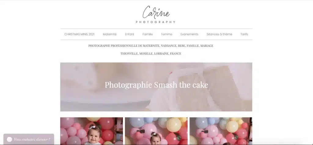 Carine photography est un site de photographe réalisé avec Wix. Bien qu’il ait une vocation à exposer des photos, l’intérêt de ce site réside dans l’accent mis sur l’aspect commercial. En effet, on y trouve des call-to-action : des boutons qui poussent à l’action, et des textes travaillés pour la conversion. Le référencement n’a pas été laissé de côté, comme en témoignent l’utilisation de mots-clés pertinents et la variété des catégories disponibles. Un parmi bel exemple de site de photographe, se rapprochant d’un site e-commerce par son aspect et sa structure.