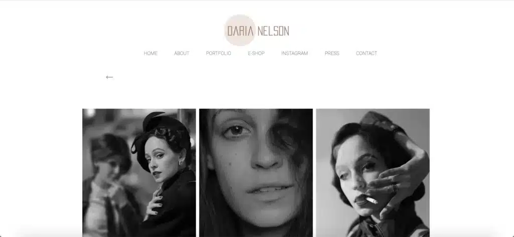 Le site de Daria Nelson compte parmi les beaux exemples de sites de photographe réalisés avec Wix. Une navigation très claire, un graphisme sobre avec tout de même une petite touche de fantaisie, on retrouve tous les éléments attendus pour ce type de site. Les polices détonnantes choisies avec soin et disposées de façon inhabituelle apportent de l’originalité. En termes de fonctionnalités, on retrouve un e-shop directement intégré au site.