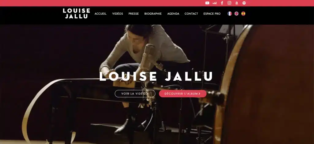 Louise Jallu est une musicienne de jazz française et nous présente un bel exemple de portfolio réalisé sous Wix. Ce one-page, c’est-à-dire un site organisé en une seule page, se compose de diverses sections. De nombreuses fonctionnalités sont présentes : intégration de vidéos, présentation de fichiers téléchargeables, inscription à la newsletter et connexion possible à des outils d’automatisation marketing (comme Wix Automations ou Zapier) pour optimiser la gestion des contacts, ce site est une preuve qu’il est possible de faire beaucoup de choses avec Wix. Le tout de façon esthétique, avec une belle vidéo qui défile en continu en arrière-plan !