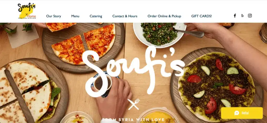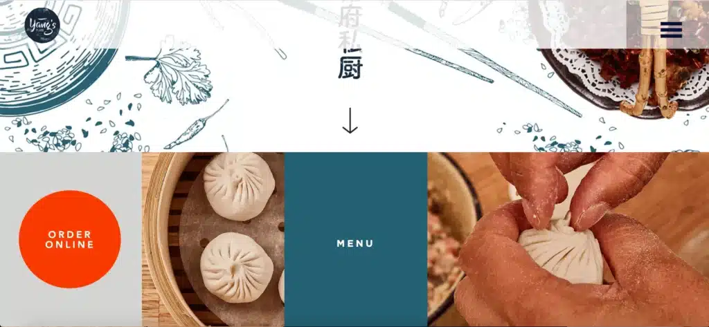 Yangs est un restaurant situé en Australie proposant une cuisine traditionnelle chinoise. Ce bel exemple de site réalisé avec Wix offre une expérience un peu plus inhabituelle. On y retrouve bien sûr le menu, la carte, quelques mots sur l’identité, la possibilité de commander en ligne ainsi qu’un formulaire de contact. En revanche, sur la page d’accueil les différents éléments sont organisés au sein d’une mosaïque particulièrement graphique. Celle-ci alterne aussi bien des photos des plats que du restaurant, ou encore d’illustrations. Des liens, intelligemment intégrés à cette mosaïque, mènent vers les différentes catégories. La navigation est légèrement moins intuitive que sur les exemples précédents, mais reste tout de même fluide et complètement accessible. Le rendu est vraiment visuel.