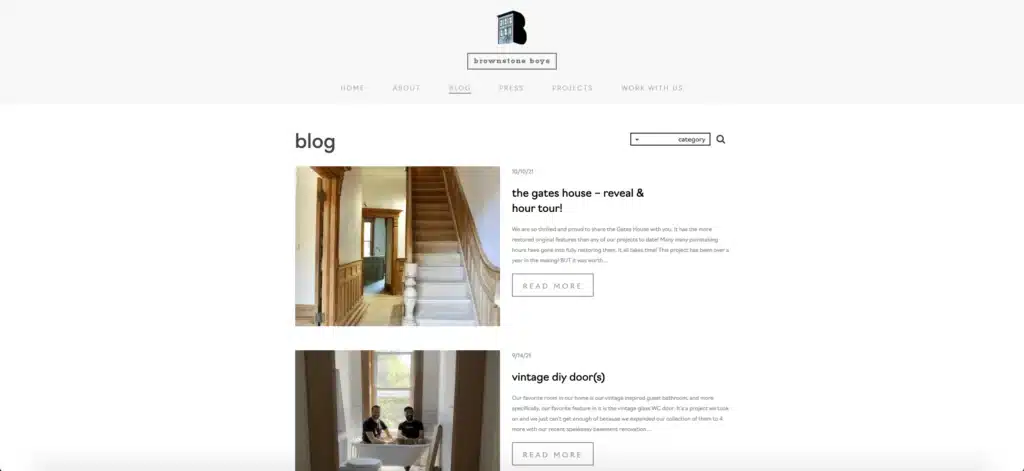 Impossible d’évoquer la catégorie des blogs sans mentionner Wix lui-même ! Et oui en effet, le blog de Wix a bien été réalisé… sous Wix. Un design très simple en noir et blanc, des typographies classiques et des boutons plutôt standards. Peu de surprises, mais un blog très clair et fonctionnel. La barre de navigation affiche les différentes catégories et les articles, classés par dates, sont alors organisés en lignes. En termes de fonctionnalités, on retrouve une barre de recherche (efficace : on l’a testée pour écrire cet article et elle s’est avérée très utile !) et un espace de connexion pour les membres. Chaque article propose une alternance agréable entre texte et médias, photos comme vidéos.