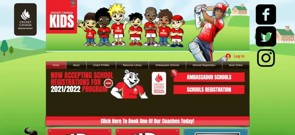 Cricket Canada Kids amène les enfants canadiens au cricket. Les inscriptions pour les écoles et pour les enfants dans le cadre de différents programmes adaptés à l’âge peuvent être effectuées à partir de la page d’accueil elle-même. Les ressources vidéo sont également accessibles directement depuis la page d’accueil.