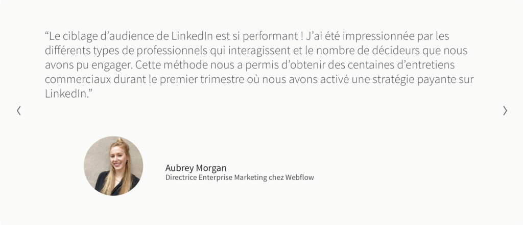 Quand Webflow a décidé de séduire les grandes entreprises, la plateforme n’a pas fait les choses à moitié. En s’appuyant sur LinkedIn Ads, elle a exploité au maximum les outils de ciblage pour toucher des décideurs clés, allant des directeurs marketing aux experts UI/UX. Avec des campagnes taillées sur mesure – mêlant Sponsored Content, Conversation Ads, et formulaires Lead Gen – chaque message trouvait sa cible avec précision.