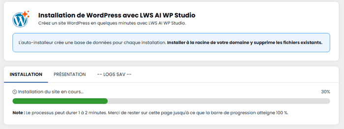Pas besoin d’être développeur, pas besoin de lire un tuto de 40 pages. LWS vous propose un assistant intelligent, intégré directement à l’installation de WordPress, qui fait (presque) tout à votre place.