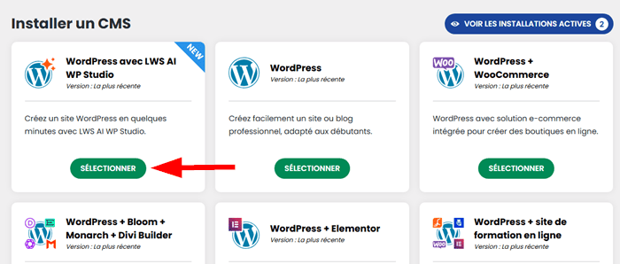 - Et bien sûr, l’installation WordPress avec l’assistant IA intégré.
