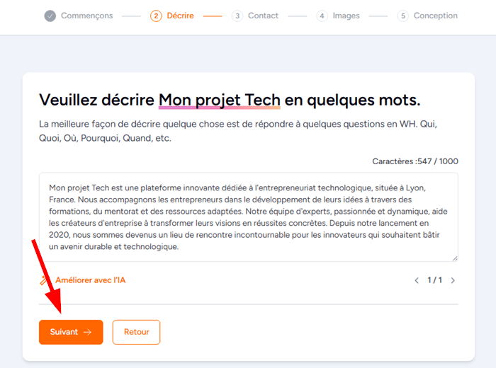 C’est le moment de parler un peu de vous. En une ou deux phrases, expliquez ce que vous proposez, à qui, et pourquoi. L’IA s’appuie sur cette description pour créer les textes, titres, sections… adaptés à votre thématique.