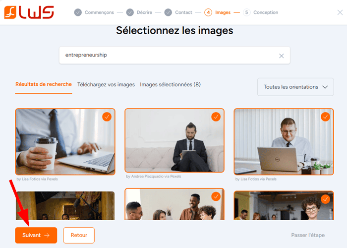 Pas de visuels sous la main ? Pas de panique. L’assistant IA vous propose des images en lien avec votre activité. Vous pouvez les utiliser telles quelles, en remplacer certaines ou ajouter vos propres visuels. Tout est intégré automatiquement dans les bonnes sections.