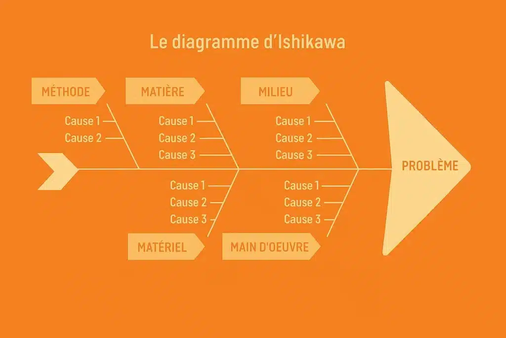 Le diagramme d’Ishikawa sert à ça. Pas à décorer une présentation. À structurer une réflexion et à mettre à plat les causes possibles d’un dysfonctionnement, avec méthode. Et à embarquer l’équipe dans une vraie démarche de résolution — pas un brainstorming à la volée.