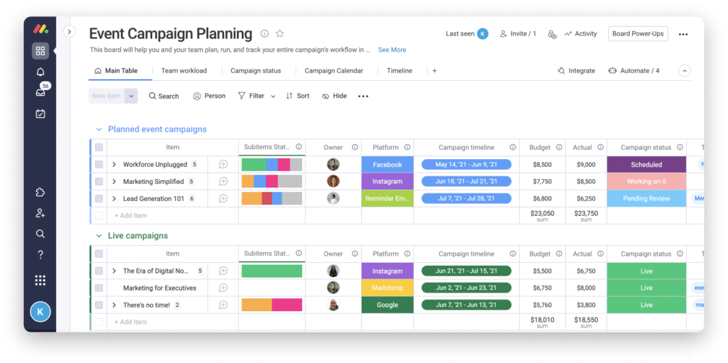 Monday.com est un logiciel de gestion de projet viseul et intuitif qui s’adapte assez bien à la méthode PERT. Grâce à ses tableaux personnalisables, il est facile de lister les tâches, d’estimer leurs durées et de suivre les dépendances entre elles. L’outil permet également de définir des jalons clés, de collaborer en temps réel avec l’équipe, et de générer des vues chronologiques ou en diagramme de Gantt qui complètent parfaitement l’approche PERT. Sa souplesse le rend particulièrement adapté aux équipes pluridisciplinaires et aux projets évolutifs. Découvrez notre avis sur monday.