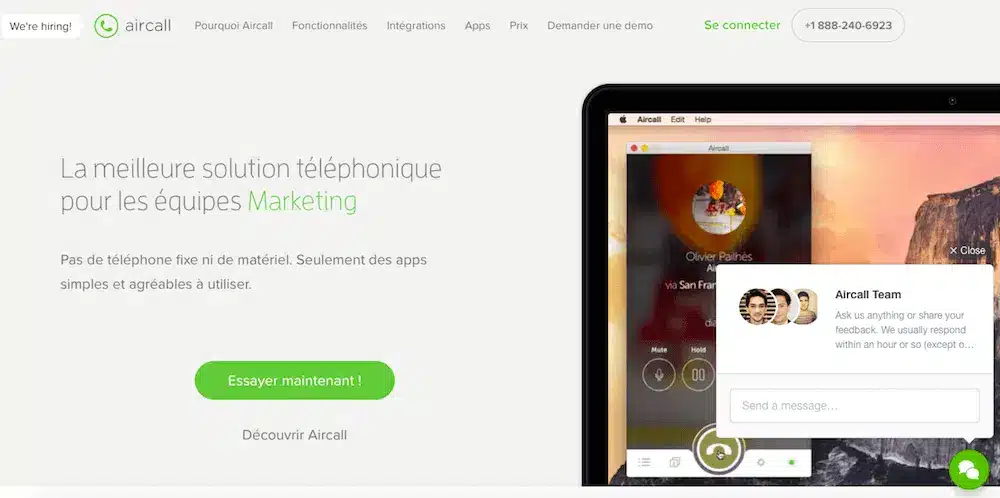 Créé en 2014 par une équipe réunissant Olivier Pailhèse, Jonathan Anguelov, Pierre-Baptiste Béchu et Xavier Durand, Aircall est un logiciel 100% cloud de support téléphonique collaboratif. La startup cible principalement les PME souhaitant optimiser la gestion de leur support téléphonique. Aircall permet de créer son propre call center avec des numéros locaux dans de nombreux pays, de gérer les appels de manière collaborative, de les intégrer dans son CRM et de suivre les performances. Aircall poursuit son développement à l’international et continue de renforcer ses équipes.