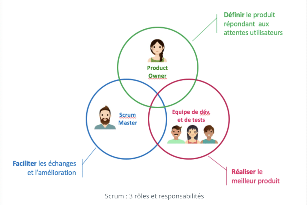 - Le Scrum Master dont le rôle de communicant est essentiel pour améliorer le travail de l’équipe.