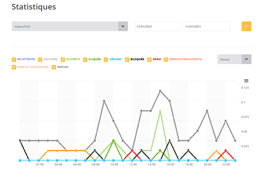 Exemple de statistiques issues de la solution MailJet :
