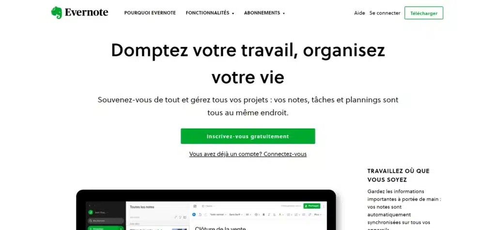 Evernote est avant tout une application de prise de notes, mais elle permet également de gérer des listes de tâches à réaliser. Disponible sur votre navigateur web et depuis une application mobile, Evernote se charge rapidement depuis n’importe quel support.