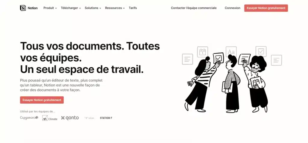 - IA de Notion : un module complémentaire et facultatif à 8$/mois/par utilisateur (facturation annuelle) pour travailler plus vite, écrire mieux et lancer de nouveaux projets avec l’Intelligence Artificielle