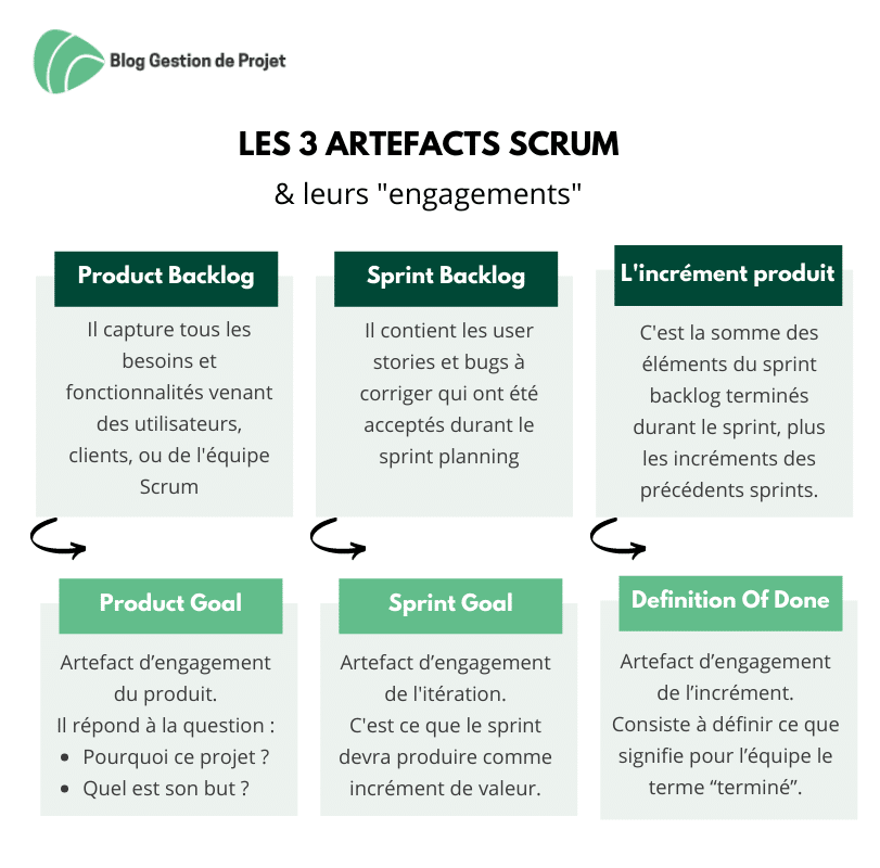 - 3 artefacts : product backlog, sprint backlog, incrément