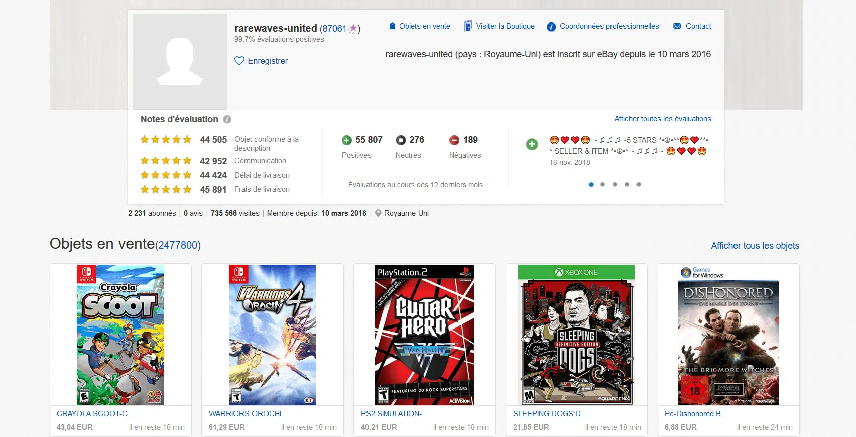 Exemple d’un vendeur à succès, dans le jeu-vidéo, sur eBay