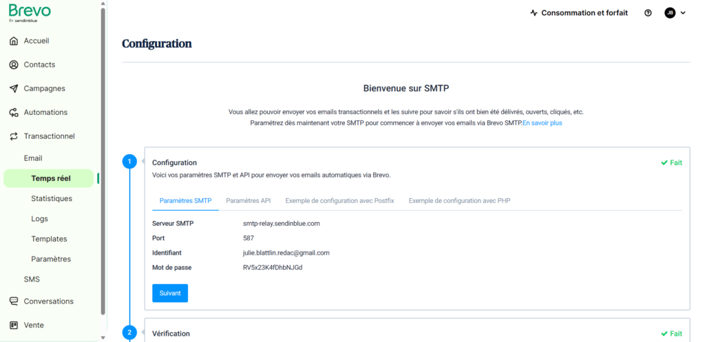 Une API Brevo existe également pour faire le lien avec votre hébergeur web, ce qui est très utile notamment dans le cas de campagne d’emailing transactionnel qui se nourrit des informations de votre site web.