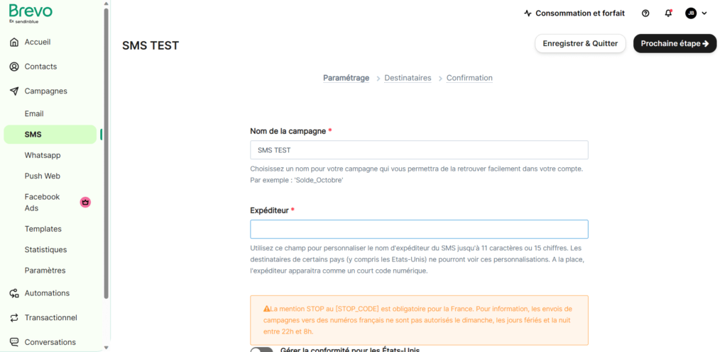 Bien que les fonctionnalités de SMS Marketing proposées par Brevo soient assez basiques par rapport à ses concurrents, elles permettent néanmoins de lancer des campagnes efficaces, même pour les plus novices.