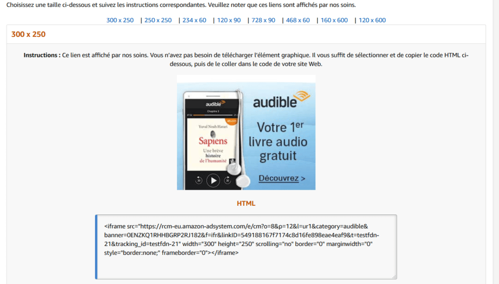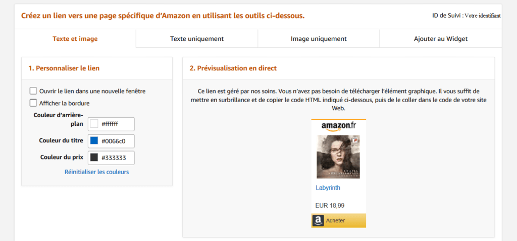 Pour devenir partenaire d’Amazon, il vous suffit de créer un compte et de sélectionner vos liens en fonction de vos besoins. Vous allez pouvoir choisir sous quelles formes vont apparaître vos liens : texte, image ou image couplée à un texte.
