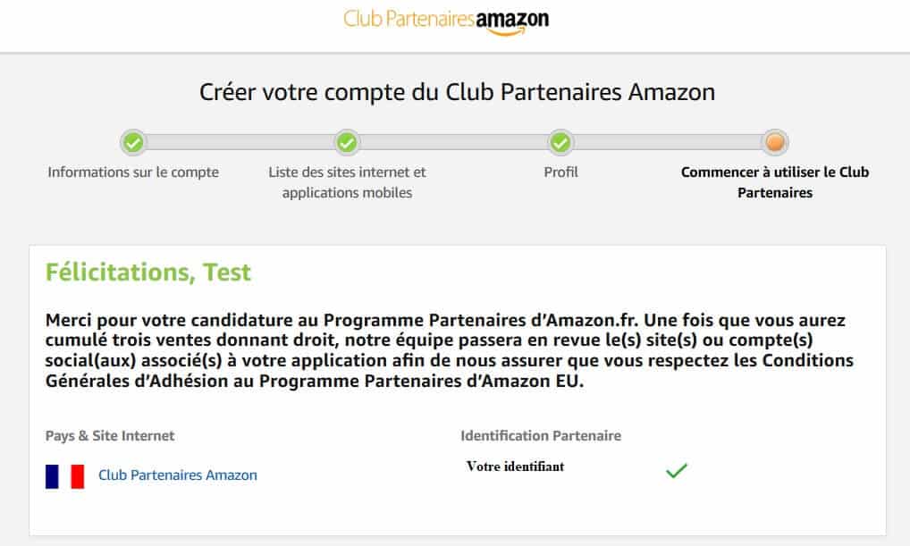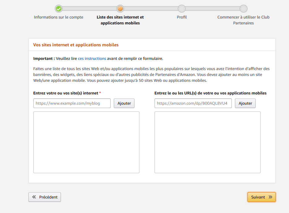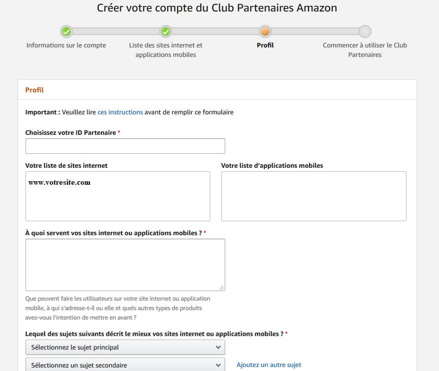 Enfin, vous devrez indiquer ici les renseignements liés à votre profil sur la plateforme du Club Partenaire Amazon.