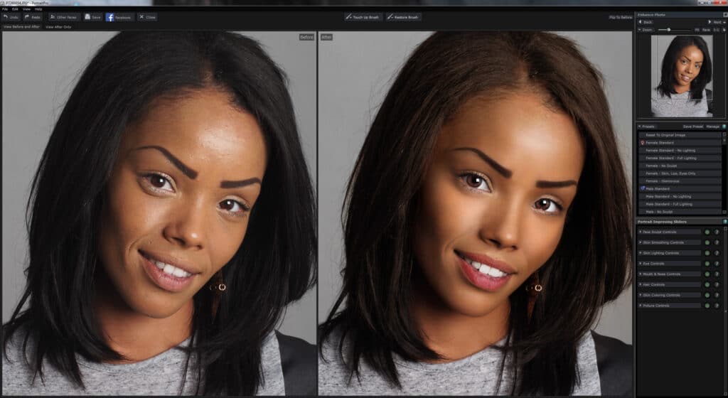 PortraitPro est un éditeur d’images professionnel conçu pour les photographes spécialisés dans les portraits. L’application comprend tout ce dont vous pourriez avoir besoin pour modifier le teint, éliminer les imperfections ou les rides du visage, ajouter du maquillage et plus encore. En outre, il vous permet d’ajouter des effets pour corriger des choses comme un mauvais éclairage ou se débarrasser des joues affaissées.