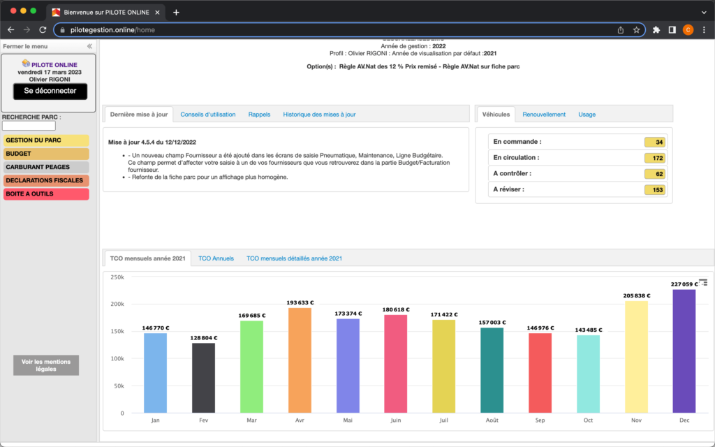 - Le tableau de bord offre une vue synthétique et claire de l’état du parc avec des widgets et des indicateurs d’évolution sur 13 mois.