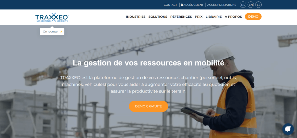 TRAXXEO propose une solution spécialisée dans la gestion des ressources sur chantier, visant à accroître l’efficacité et la productivité sur le terrain. Grâce à leur plateforme flexible, collaborative et centralisée, les utilisateurs peuvent digitaliser le partage d’informations entre les opérateurs et les chefs sur chantier, les responsables de la paie, les gestionnaires d’affaires, les gestionnaires de flotte, de parc matériel et d’inventaire.