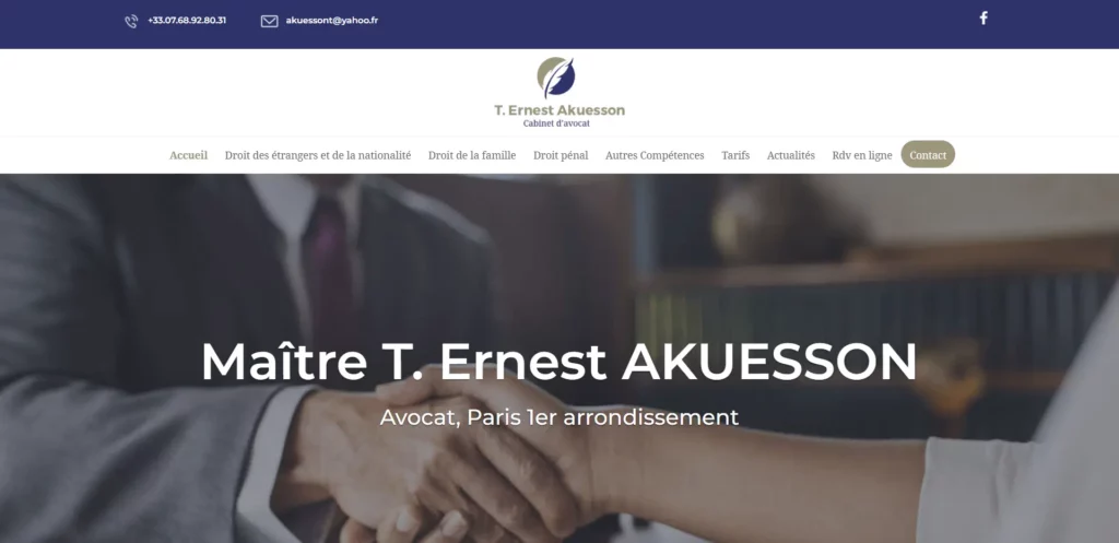 La force du site de Maître Akuesson c’est avant tout la possibilité de voir d’emblée tous les domaines d’expertise que le cabinet couvre, et la possibilité d’en savoir plus en cliquant sur la rubrique qui nous intéresse. Ajoutons à cela la possibilité de prendre rendez-vous en ligne, sans avoir besoin d’appeler de cabinet, tout est là pour satisfaire les visiteurs du site et leur apporter un service complémentaire.