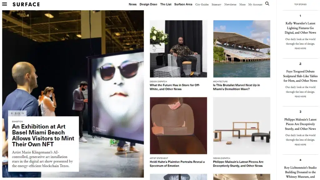 Surface Magazine, site vitrine artistique réalisé avec Squarespace
