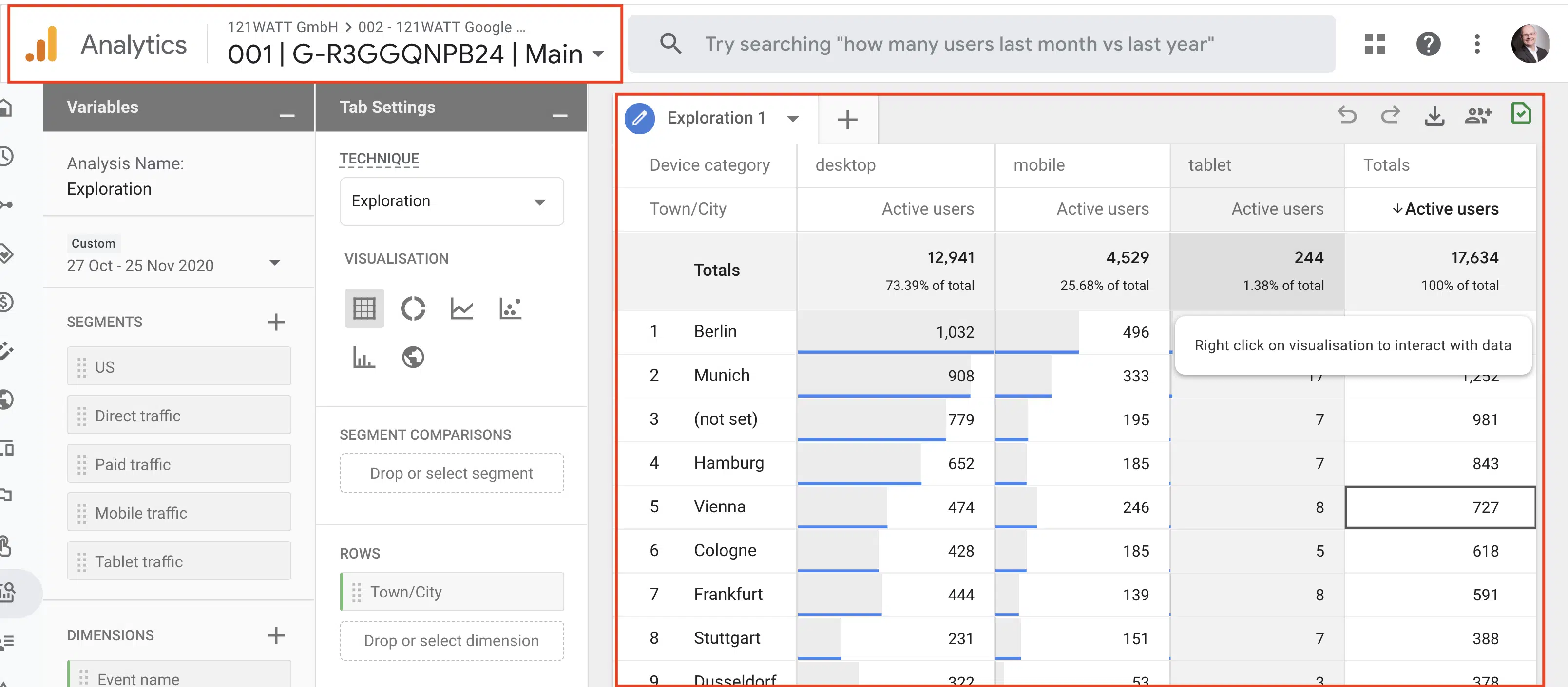 Si vous avez commencé avec Universal Analytics, vous êtes probablement habitué à voir des tonnes de tableaux de données. Si ces tableaux sont généralement utiles, ils ne sont pas faciles à manipuler lorsque vous souhaitez voir une autre métrique ou dimension. Bien sûr, vous pouvez ajouter une dimension secondaire. Mais c’est à peu près tout.
