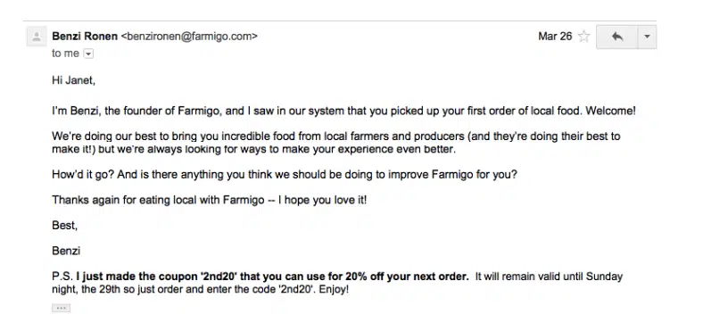 Ici, pas de visuel flashy ou de code promo. L’email est rédigé par Ronnie, membre de l’équipe Gravatar, qui prend la parole comme si c’était un échange direct. Résultat : on se sent accueilli par une personne, pas par un robot.