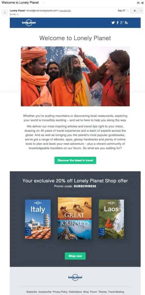 Exemple d’email de bienvenue : Surf Inc crée l’habitude d’achat