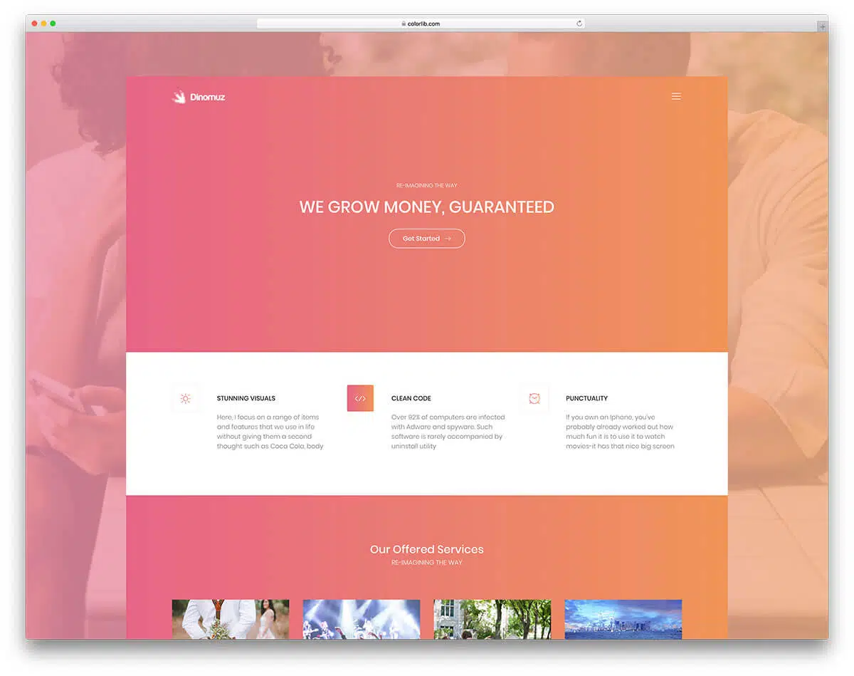 Dinomuz est un modèle de page de destination audacieux et lumineux de Colorlib, construit sur le framework Bootstrap, mais il est également compatible avec les frameworks modernes comme Tailwind CSS, de plus en plus utilisés pour la création rapide de landing pages. Derrière les couleurs attrayantes, tout est du pur minimalisme avec beaucoup d’espace, des choix de polices élégantes et un contraste de couleurs subtile qui guide les yeux des utilisateurs vers les parties les plus importantes de votre page de destination. Créez un message convaincant et insérez votre contenu dans ce modèle et cliquer sur le bouton « Publier ». Votre offre sera alors présentée de manière magnifique et qui puisse être lu sans effort. Même si vous n’avez aucune compétence en conception, vous ne vous tromperez pas avec ce modèle si vous savez élaborer une offre convaincante.