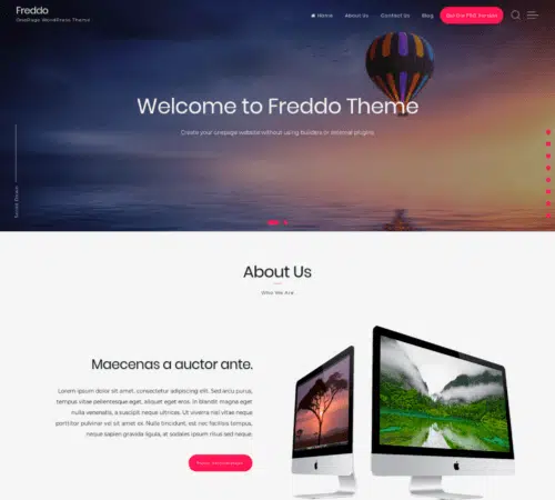 Freddo est un autre thème WordPress polyvalent venant de Justfreethemes.com. Celui-ci est conçu pour vous aider à créer des sites web one-page, et il reste compatible avec l’éditeur natif WordPress (Site Editor / Full Site Editing), ce qui évite souvent le recours à des plugins externes. Il vous suffit de tout créer à partir du thème lui-même et de publier votre page de destination ou votre site lorsque vous êtes prêt. Freddo est totalement compatible avec WooCommerce, vous permettant de créer des pages de destination de produits ou de simples magasins ecommerce. Vous pouvez également créer une page de blog pour améliorer votre classement sur les moteurs de recherche, générer des leads et promouvoir vos produits / services. L’intégration avec des outils d’optimisation SEO modernes comme Rank Math ou SEOPress est également possible.