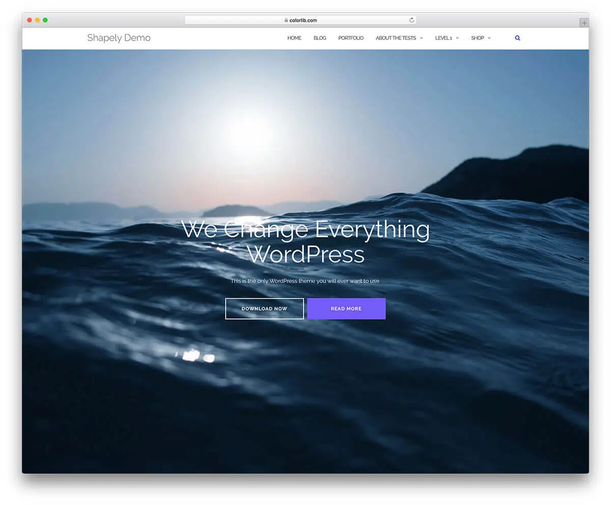 Shapely est un autre thème WordPress gratuit et polyvalent, qui provient de la collection Colorlib. Il est davantage adapté aux entreprises B2B qui sont orientées services. Il dispose d’un design élégant avec des dispositions minimales qui mettent l’accent sur les éléments visuels. Il est livré avec une disposition « one-page », idéale pour les landing pages et les sites web n’ayant qu’une seule page. Bien que ce thème s’adresse plus aux entreprises B2B et de services, il s’intègre parfaitement à WooCommerce et reste compatible avec les solutions e-commerce modernes comme Easy Digital Downloads ou SureCart, ce qui vous permet de vendre des produits directement à partir de votre page de destination.