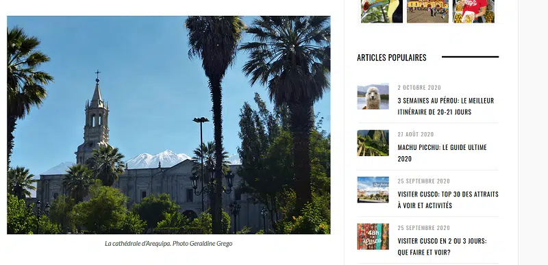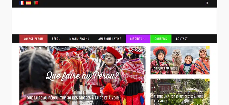 Voilà un site dédié au Pérou qui tient ses promesses ! Circuits, conseils aux voyageurs, mention des réseaux sociaux… les incontournables du blog de voyage sont présents. Le site est en fait un portail plus large qui permet d’organiser son voyage dans toute l’Amérique latine, du Mexique à l’Argentine. Petits bémols : un manque de clarté globale et l’absence de logo, mais le site reste bien fourni et nous renseigne plutôt efficacement.