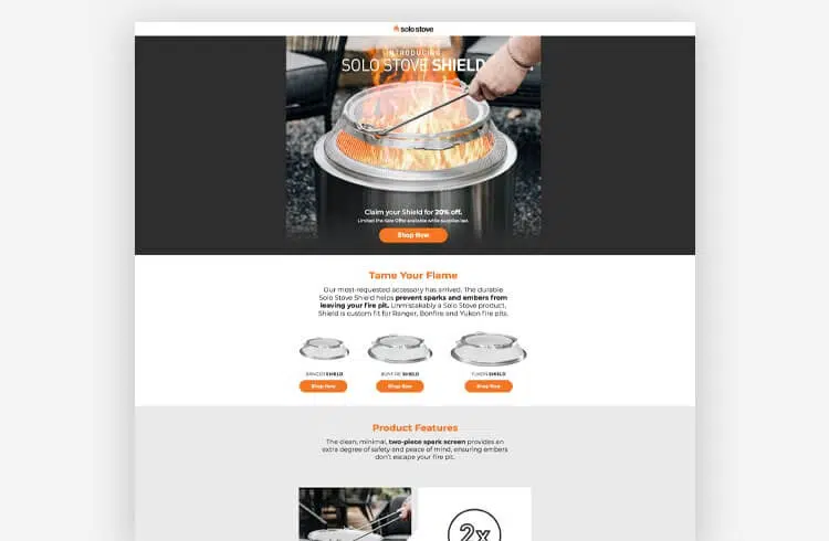 Visuel clean, CTA unique, sentiment d’urgence (“Stock limité à 500 commandes”) : tout pousse à tester maintenant.