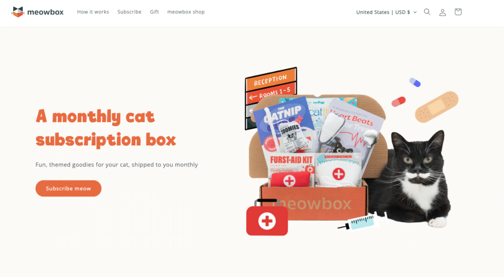 Caats ne vend pas des croquettes, elle vend le menu sur mesure de votre chat. La landing est redoutable d’efficacité : -50 % sur le kit d’essai, un mini quiz de personnalisation, et une promesse simple – “Des repas adaptés à ses besoins et à ses goûts.”