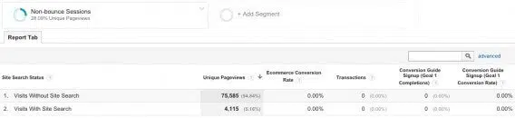 Un visiteur qui cherche un produit ou un service sur votre site a deux possibilités : utiliser un moteur de recherche (Google par exemple), ou faire sa recherche directement sur votre site, en utilisant le menu ou le moteur de recherche interne par exemple. On dit souvent que les visiteurs qui font leurs recherches directement sur votre site ont plus de valeur que les autres. C’est la raison pour laquelle il est pertinent de distinguer les deux cas de figure et de comparer les deux segments de visiteurs qui en résultent. D’où ce rapport personnalisé,