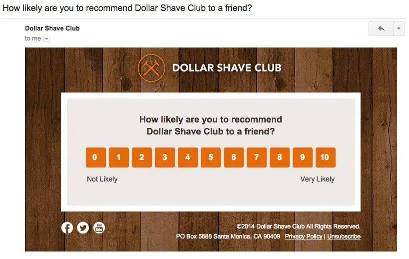 Répondre à un questionnaire, cela prend du temps et décourage certains contacts. Pour améliorer le taux de conversion de vos emails de feedbacks, vous pouvez utiliser des micro-sondages intégrés directement dans l’email ou des boutons de notation rapide, une pratique de plus en plus adoptée.