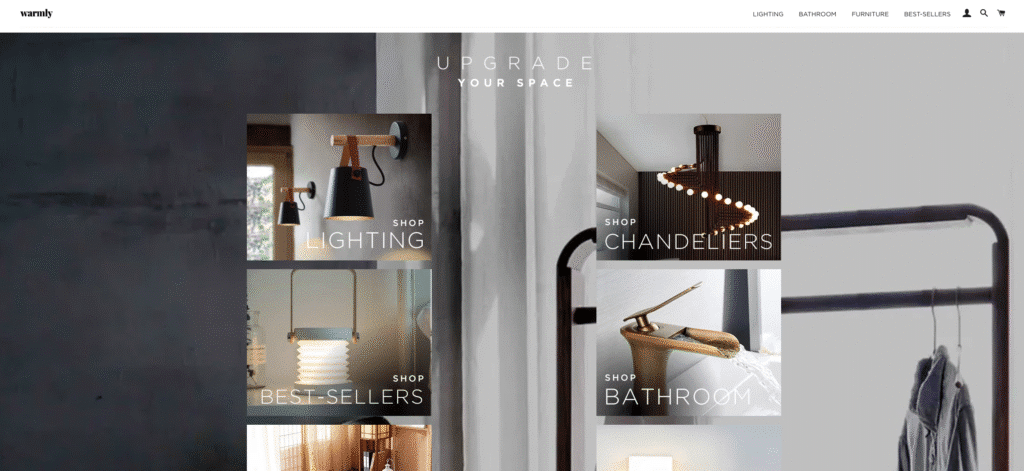 Voici le dernier des 15 exemples de sites de dropshipping. Comme vous pouvez le voir sur la capture d’écran de leur page d’accueil, ce ne sont pas des produits de dropshipping typiques. Ils vendent principalement des produits d’éclairage et des accessoires pour la maison. Avez-vous déjà vu un magasin dropshipping dans ce créneau ?