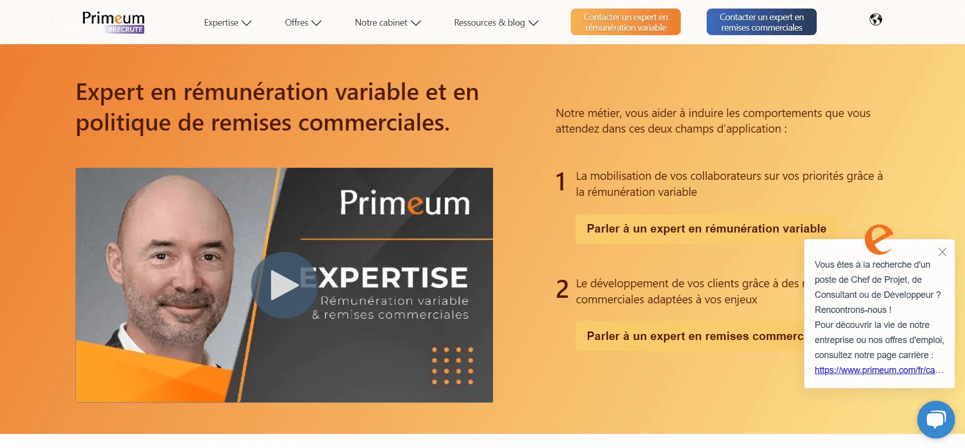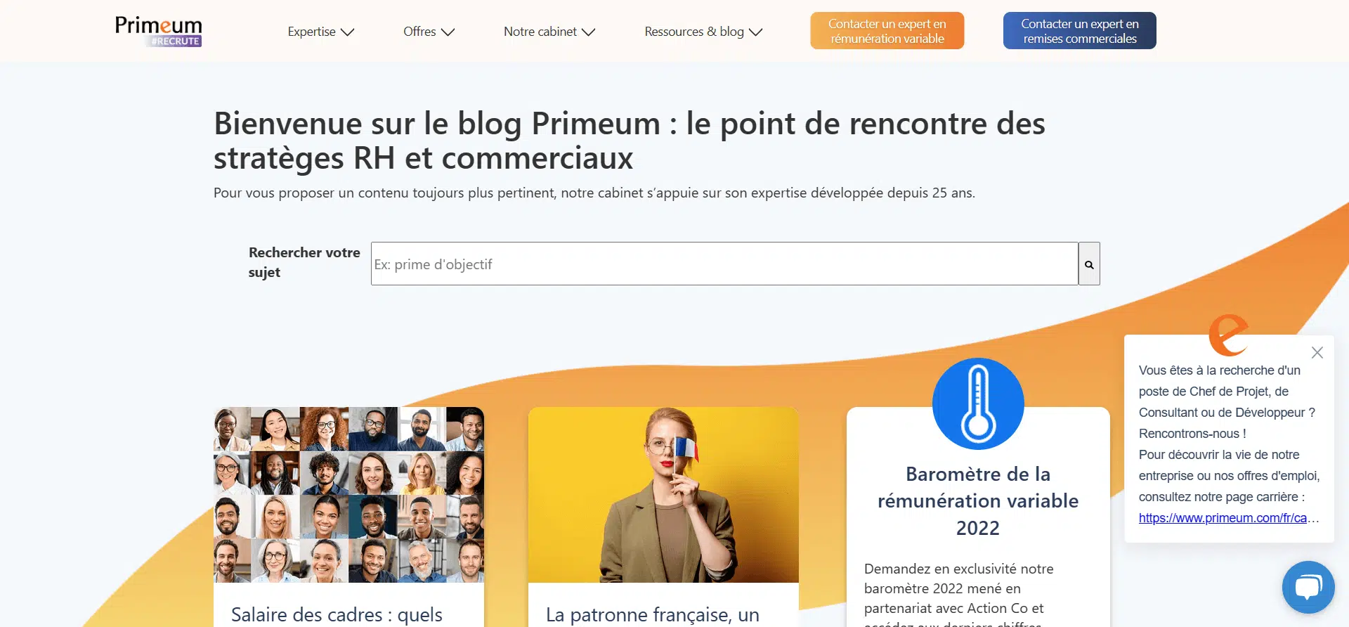 Primeum est une société spécialisée dans la conception et la mise en œuvre de solutions globales de rémunération variable et de remises commerciales. Elle s’est donnée pour mission d’offrir des dispositifs efficaces, contrôlés et durables, allant du diagnostic à la mise en œuvre de stratégies internes. Primeum a récemment lancé une offre packagée à destination des PME et a choisi HubSpot comme outil pour héberger son site et son blog via un CMS unique, créer des landings pages et des CTA pour capter des leads.
