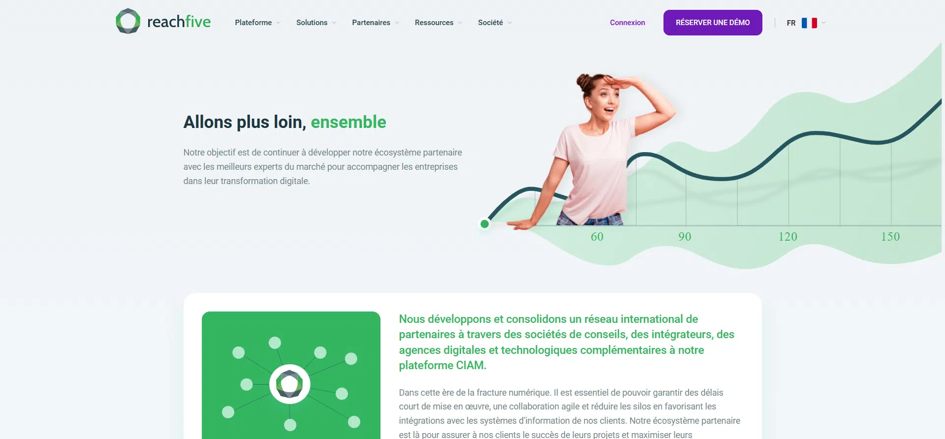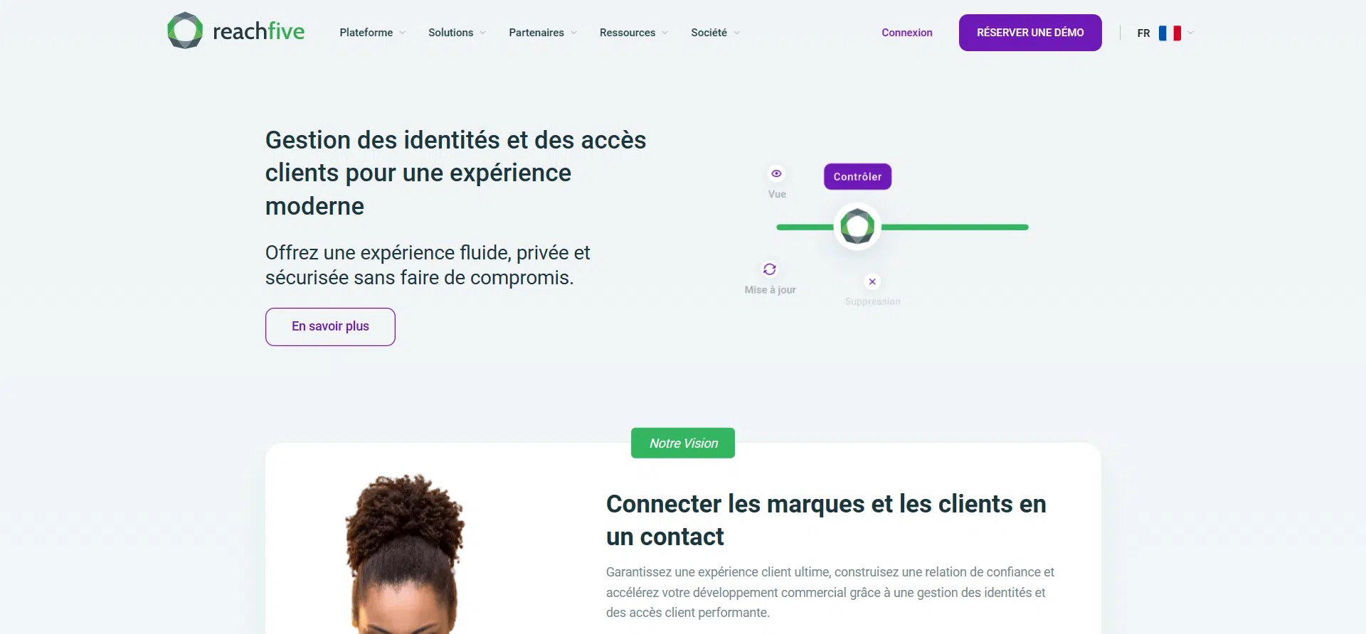 ReachFive est une entreprise qui développe des solutions de gestion des accès et des identités clients (CIAM). En utilisant l’analyse des données, ReachFive permet aux entreprises de personnaliser le contenu marketing en y intégrant des fonctionnalités de personnalisation de campagnes. Son site internet lui permet de faire connaître ses solutions, de proposer des démos et de développé son portefeuille clients et prospects. Il attire également de potentiels partenaires susceptibles de mettre en place leurs solutions au sein des entreprises de leurs clients.