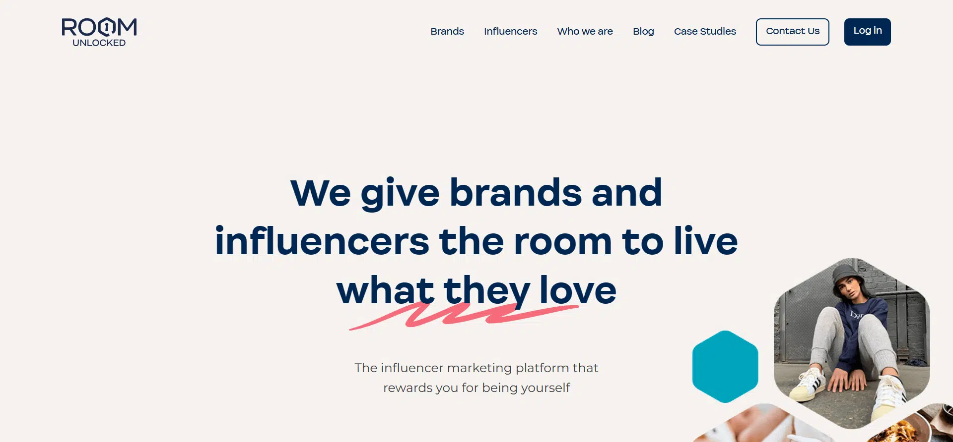 Room Unlocked : un site dédidé au marketing d’influence avec des visuels mis en avant