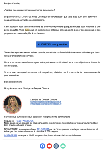L’e-mail est envoyé à la fin d’un programme bien-être. Le ton est doux, le design sobre, et l’invitation au feedback s’intègre naturellement dans la logique du parcours.