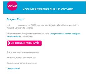 Une interface pensée pour smartphone, un design réduit à l’essentiel, et un formulaire intégré dans l’e-mail. Résultat : une expérience fluide post-trajet.