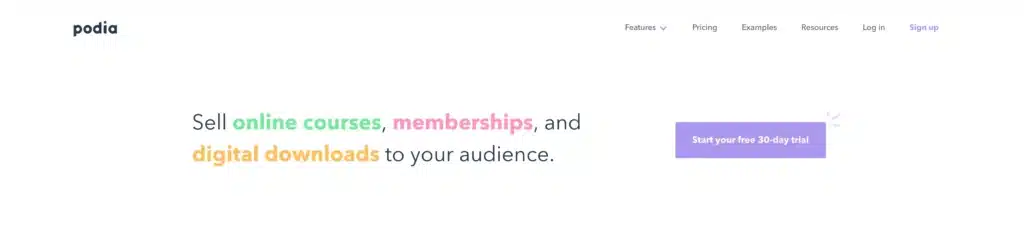Une proposition de valeur est une promesse de valeur à livrer. C’est la principale raison pour laquelle un prospect devrait acheter chez vous. Si vous êtes Amazon, vous n’avez pas besoin de vous expliquer. La plupart des magasins de commerce électronique n’ont pas ce luxe et ont une grande partie des visiteurs qui n’ont jamais entendu parler d’eux avant. Vous devez présenter votre proposition de valeur comme la première chose que les visiteurs voient sur votre page d’accueil, mais elle doit être visible dans tous les principaux points d’entrée du site (catégories et pages de produits). Que devraient véhiculer vos propositions de valeur ? Pertinence, valeur quantifiable et différenciation unique. Voici un bon exemple de Podia.