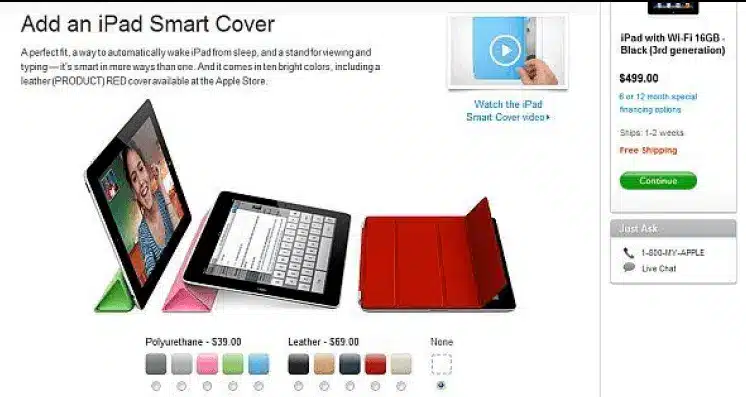 Voici la règle de l’upselling (ou vente incitative) : vous n’offrez que des produits connexes (Apple offre une couverture intelligente pour iPad et n’essaie pas de vous vendre un iPod), et l’offre doit être au moins 60% moins chère que le produit qu’ils viennent d’ajouter à leur panier.